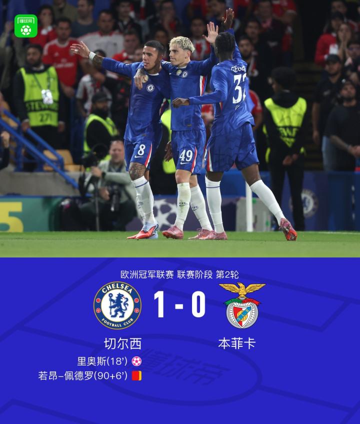 最终,比赛结果为切尔西1-0战胜本菲卡